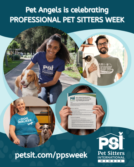 Pet Angels is celebrating Professional Pet Sitters Week by offering YOU a gift! If you book at least two services during PPSW we offer you a free 30 min. visit or walk! (Limited to one per